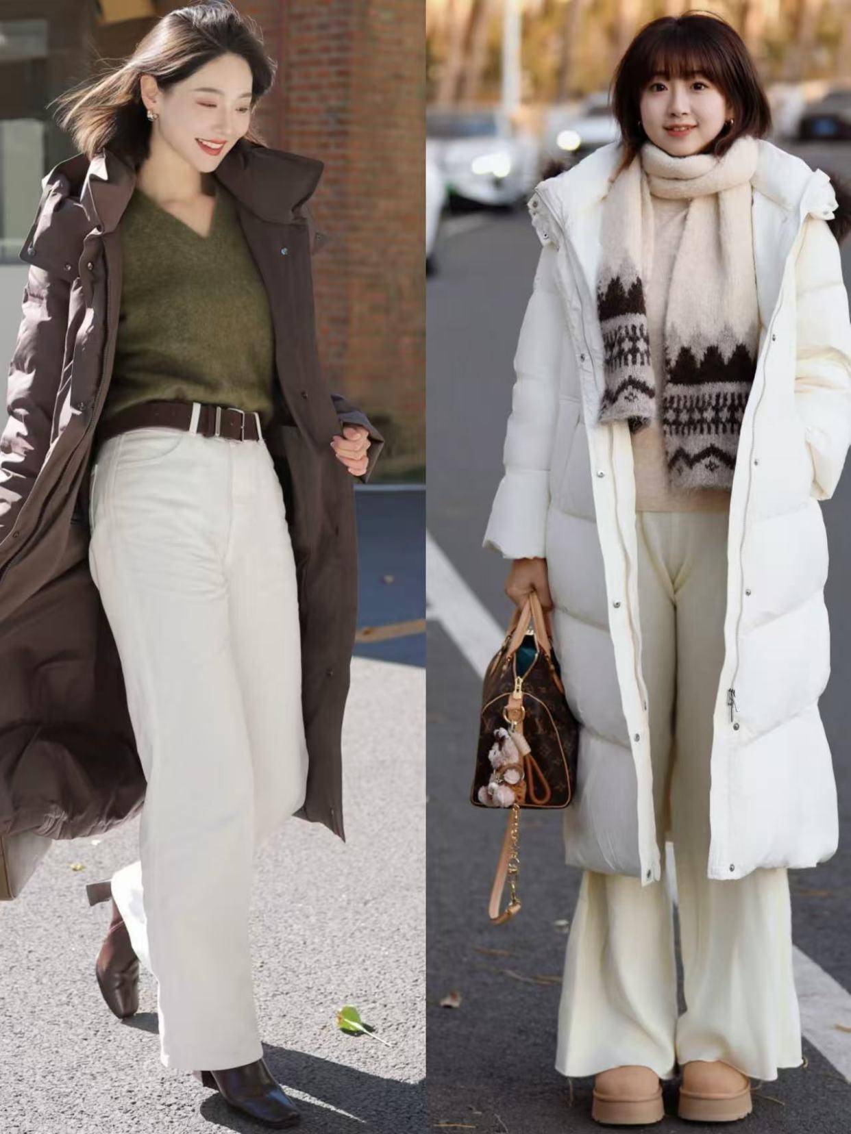 清冷的冬天,我们最初笃定是要确保我方的穿搭比拟御寒才敢外出,有的时间我们笃定会聘请带少许蓬松感的羽绒服外衣来搭配上阔腿裤,要是你聘请的裤子是紧身款,那全体就会酿成为德不卒,概况上头右边这一套穿搭用白色的阔腿裤搭配玄色羽绒服,经典耐看。