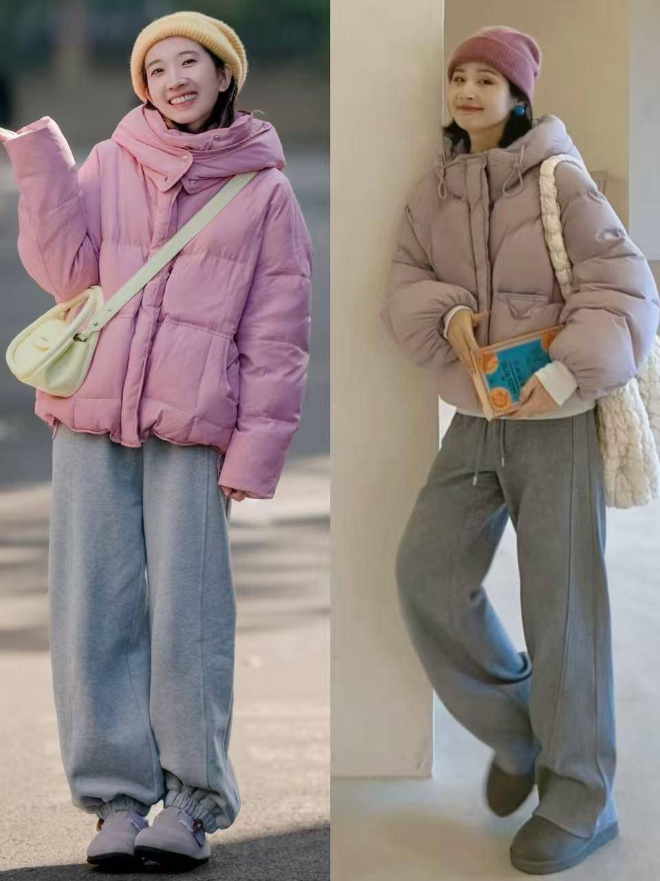 但千万不要用这种自带蓬松感的羽绒服搭配上紧身裤,要否则的话会显得为德不卒。