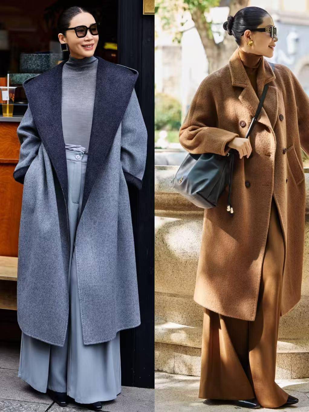第二章节:阔腿裤搭配大衣外衣,尽显秀丽风韵①:H版型大衣外衣