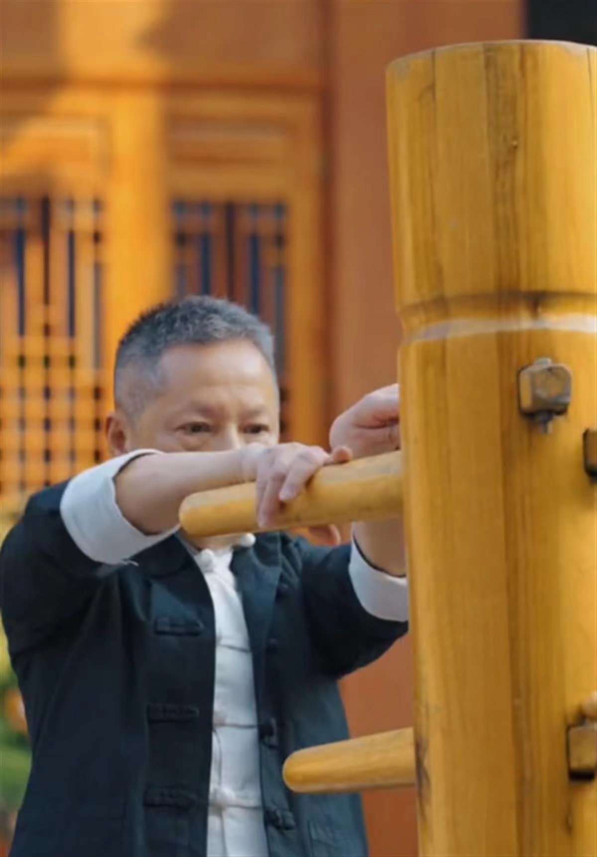 穿上练功衫,咏春能手与木东谈主桩挥拳“对打”